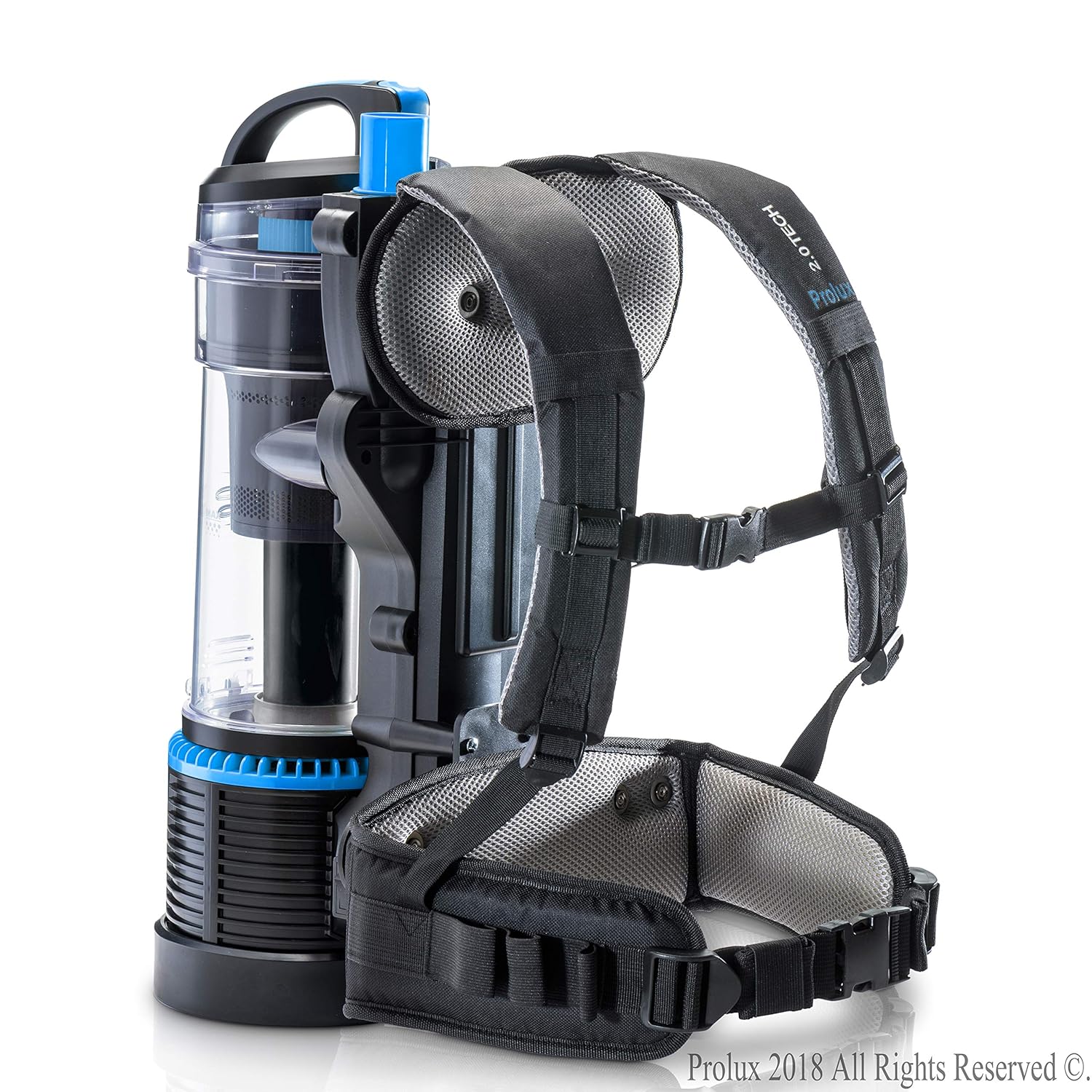 A vacuum backpack evenly distributes the canister's load and the contained debris across your entire body, leaving both hands free to operate the vacuum hose and attachment head.